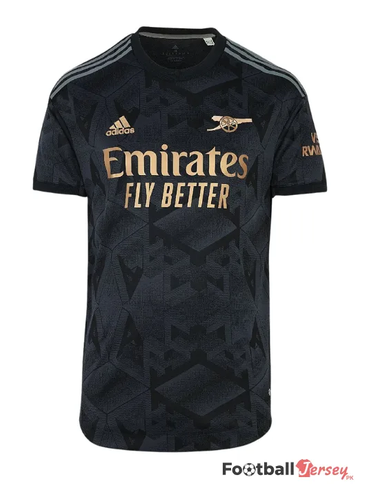 Show your Gunners pride with the Arsenal FC 2022-23 Away Kit, now available at Football Jersey PK. This stylish black-and-gold design became one of Arsenal most loved kits — perfect for fans who want a modern and bold look.